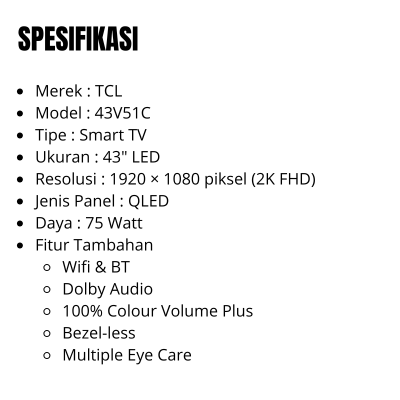 #TVTCL43V51CF #TV TCL 43V51C #smart tv 43" #smart tv 43inch #smart tv 43 inch #tv digital #peralatan elektronik #alat elektronik#televisi